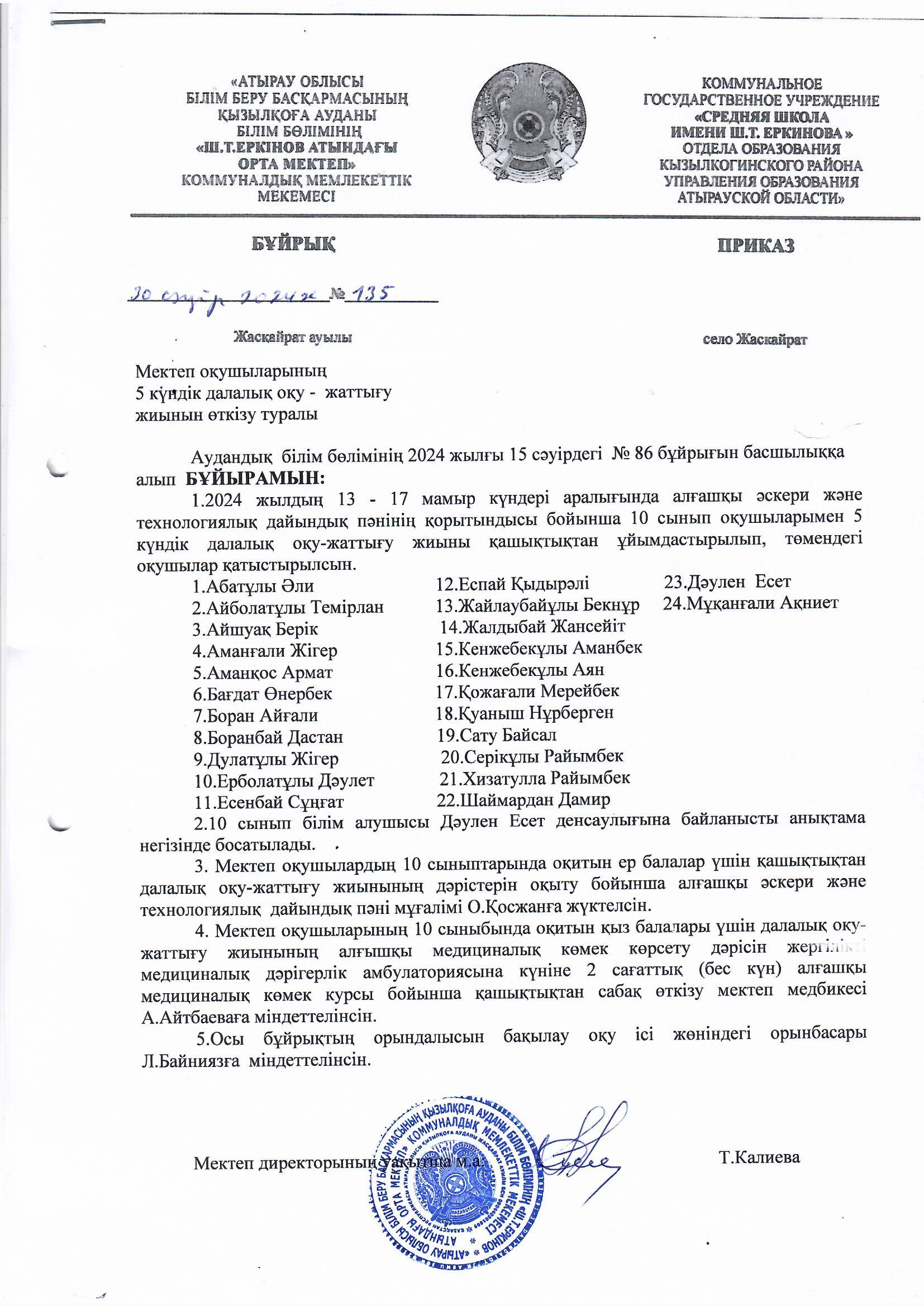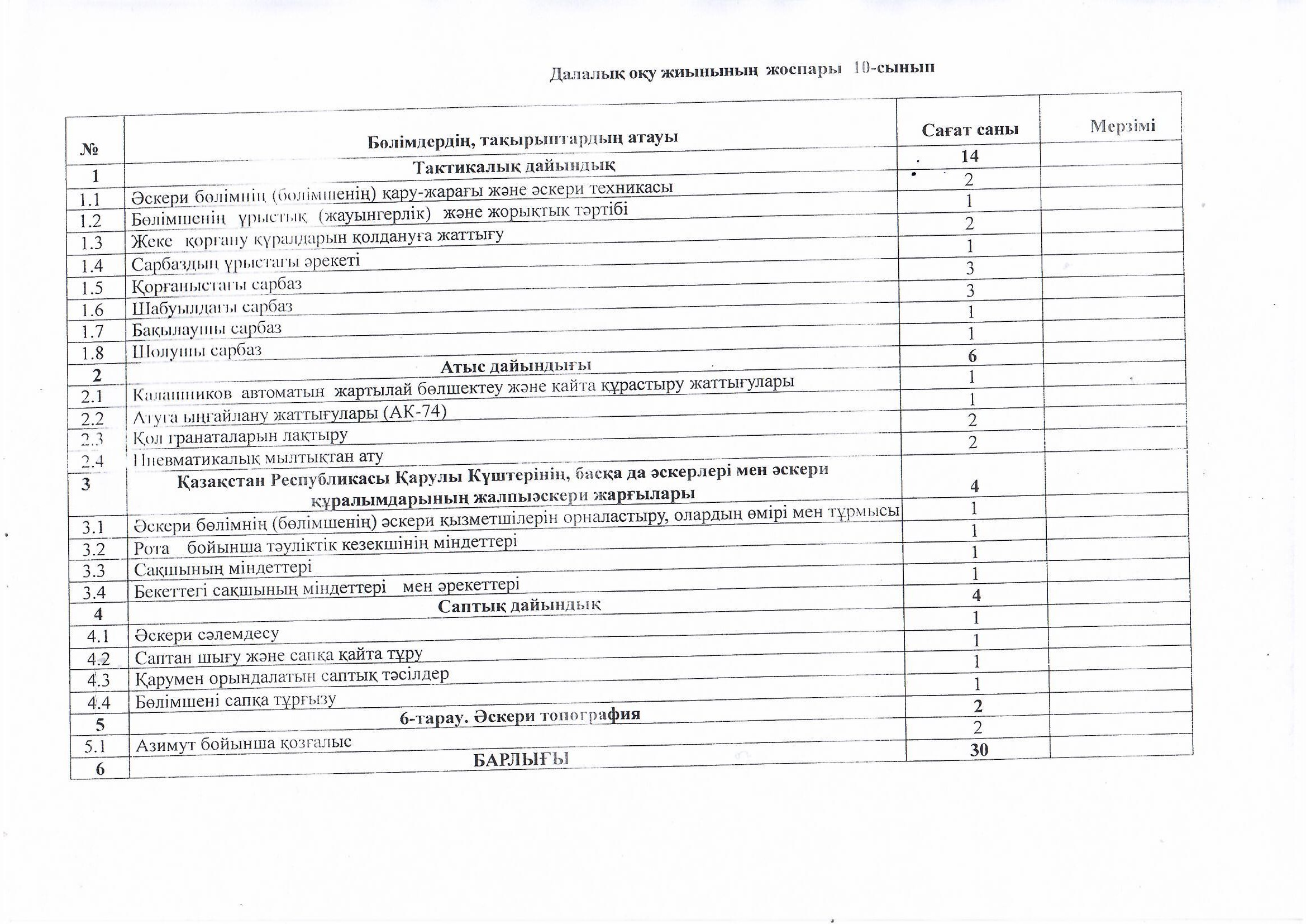 5 күндік далалық оқу жиынының өткізілген сабақтары