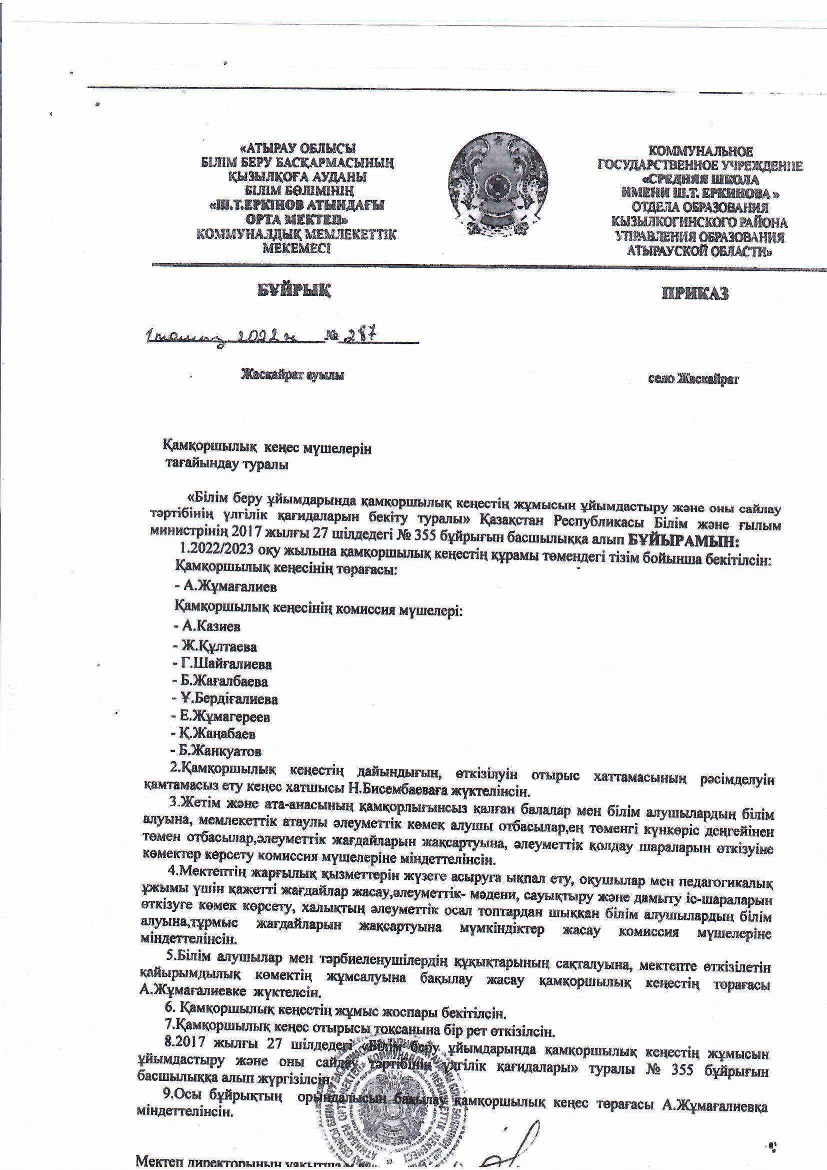 ҚР Білім және ғылым министрінің 2022 жылғы 30 наурыздағы № 117 бұйрығына сәйкес терроризмге қарсы қорғалуын ұйымдастырылуы