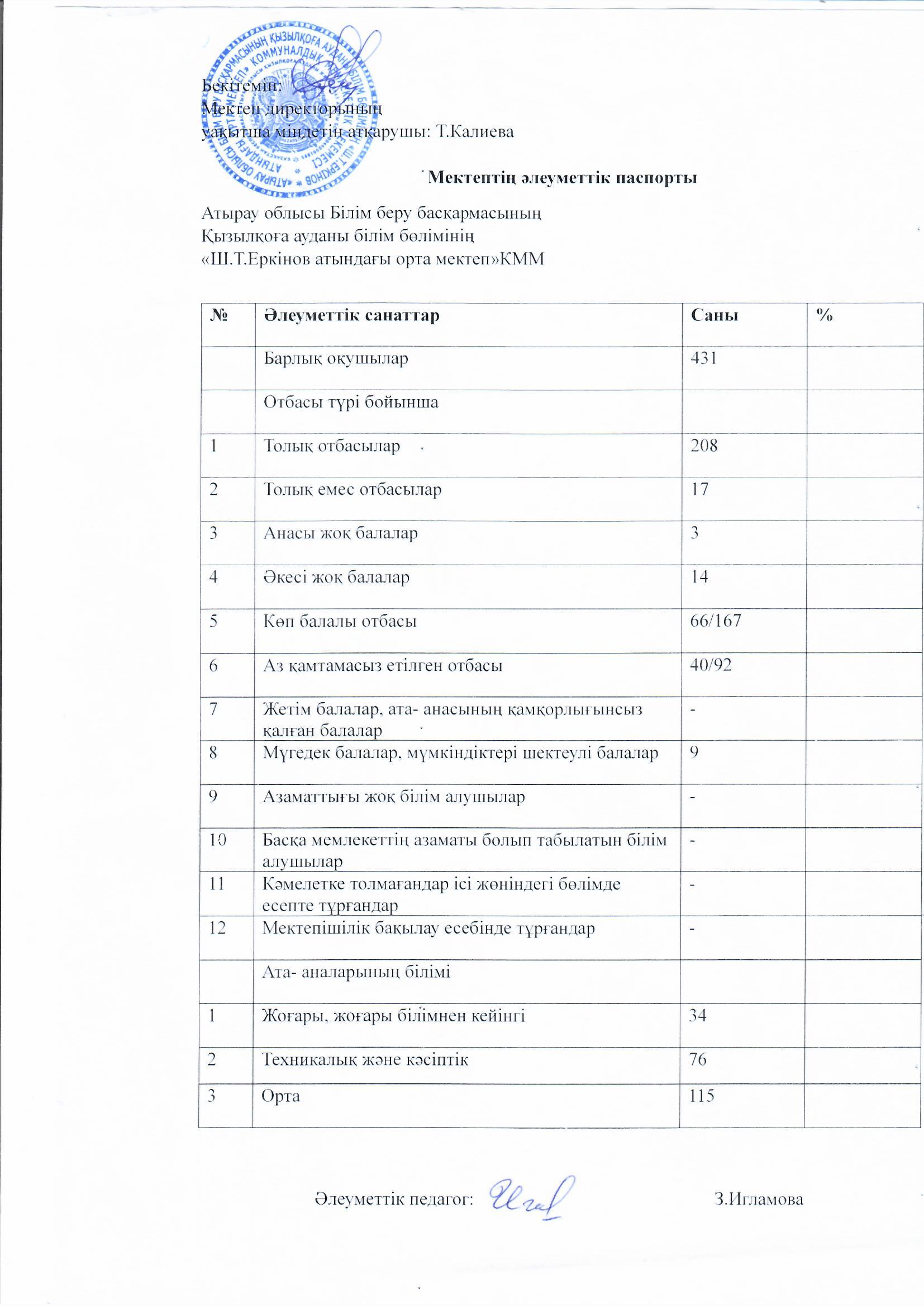 Мектептің әлеуметтік паспорты