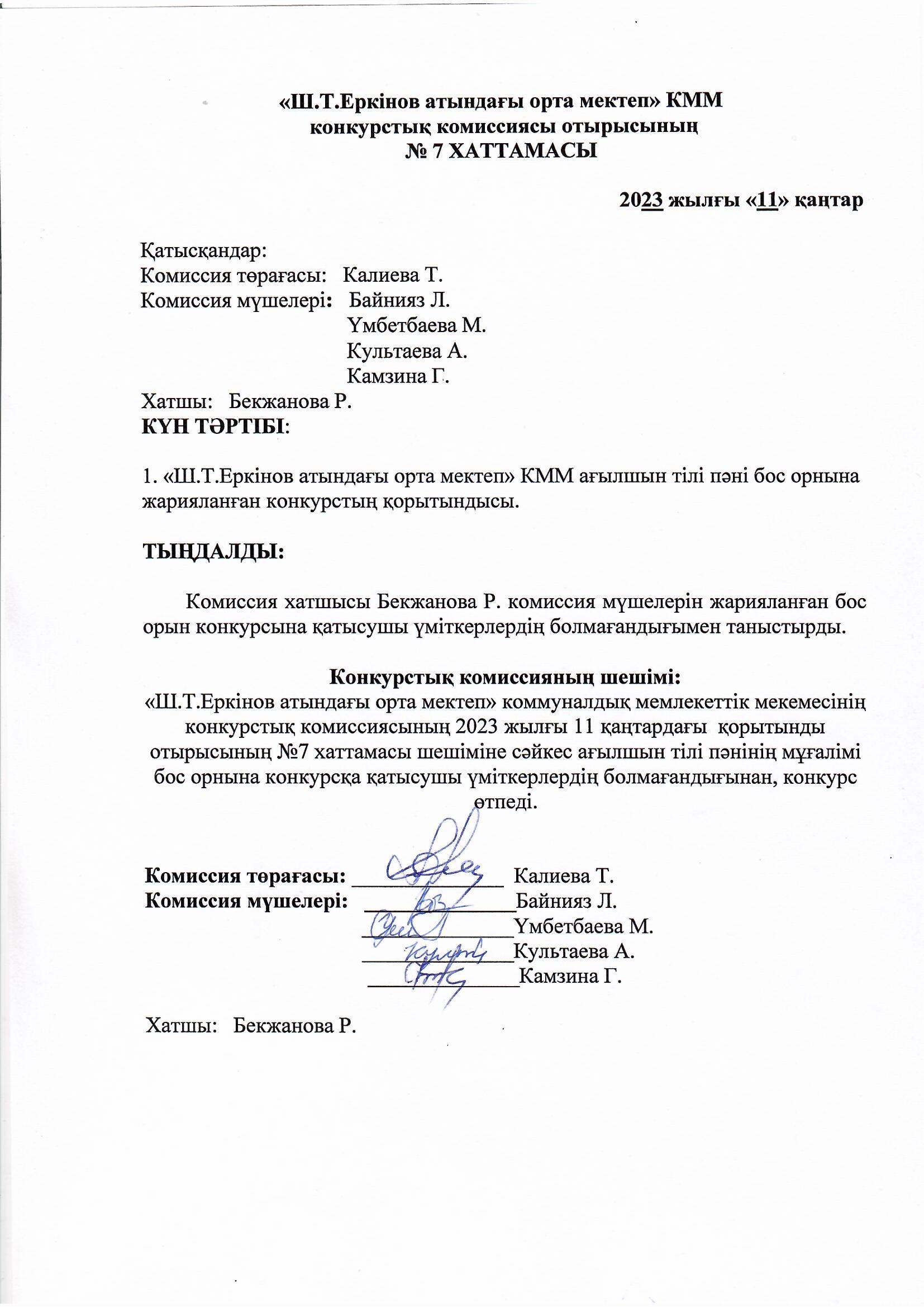 Өзін - өзі аттестациялау комиссиясының қорытындысы бойынша тұжырымы