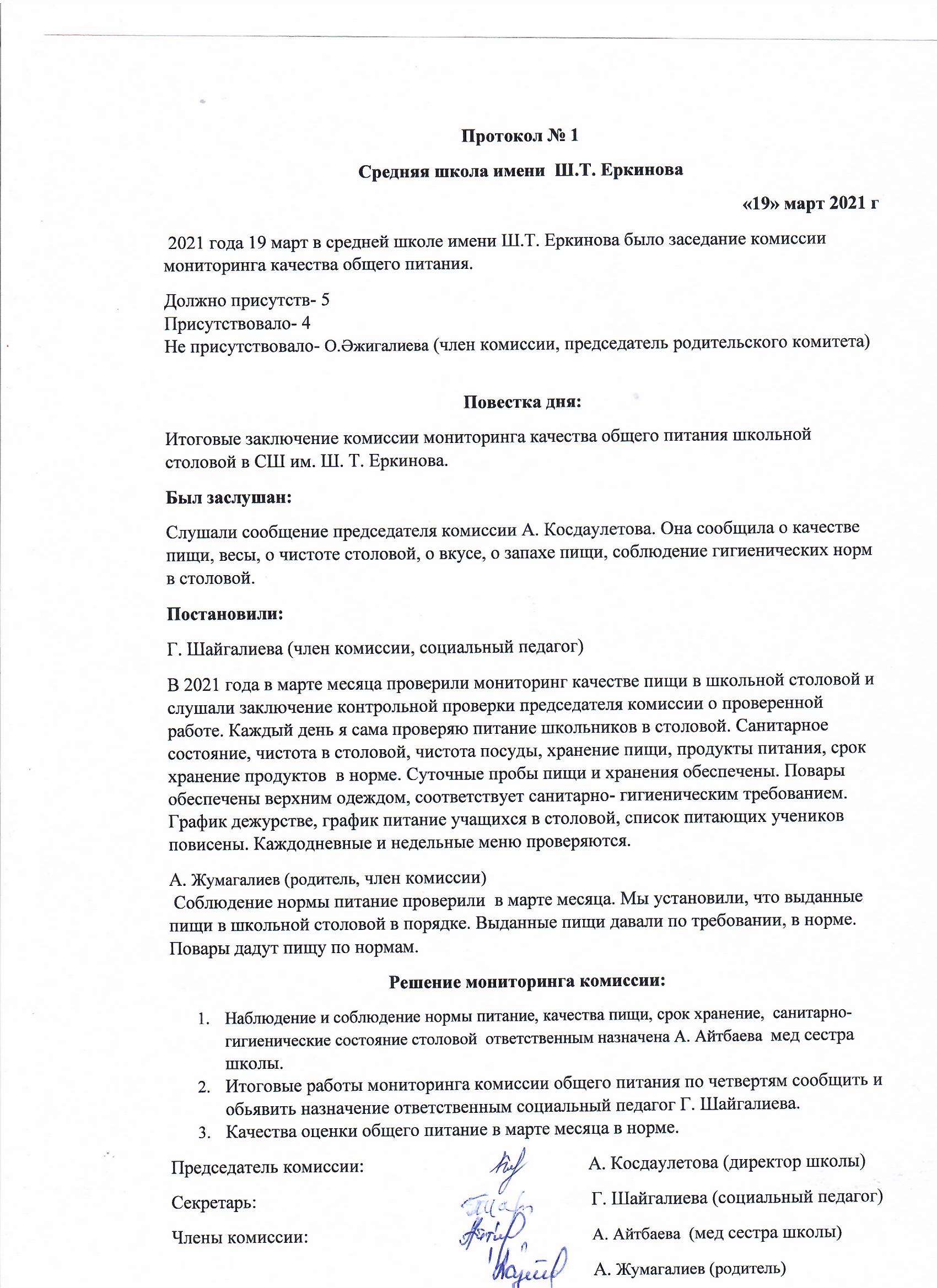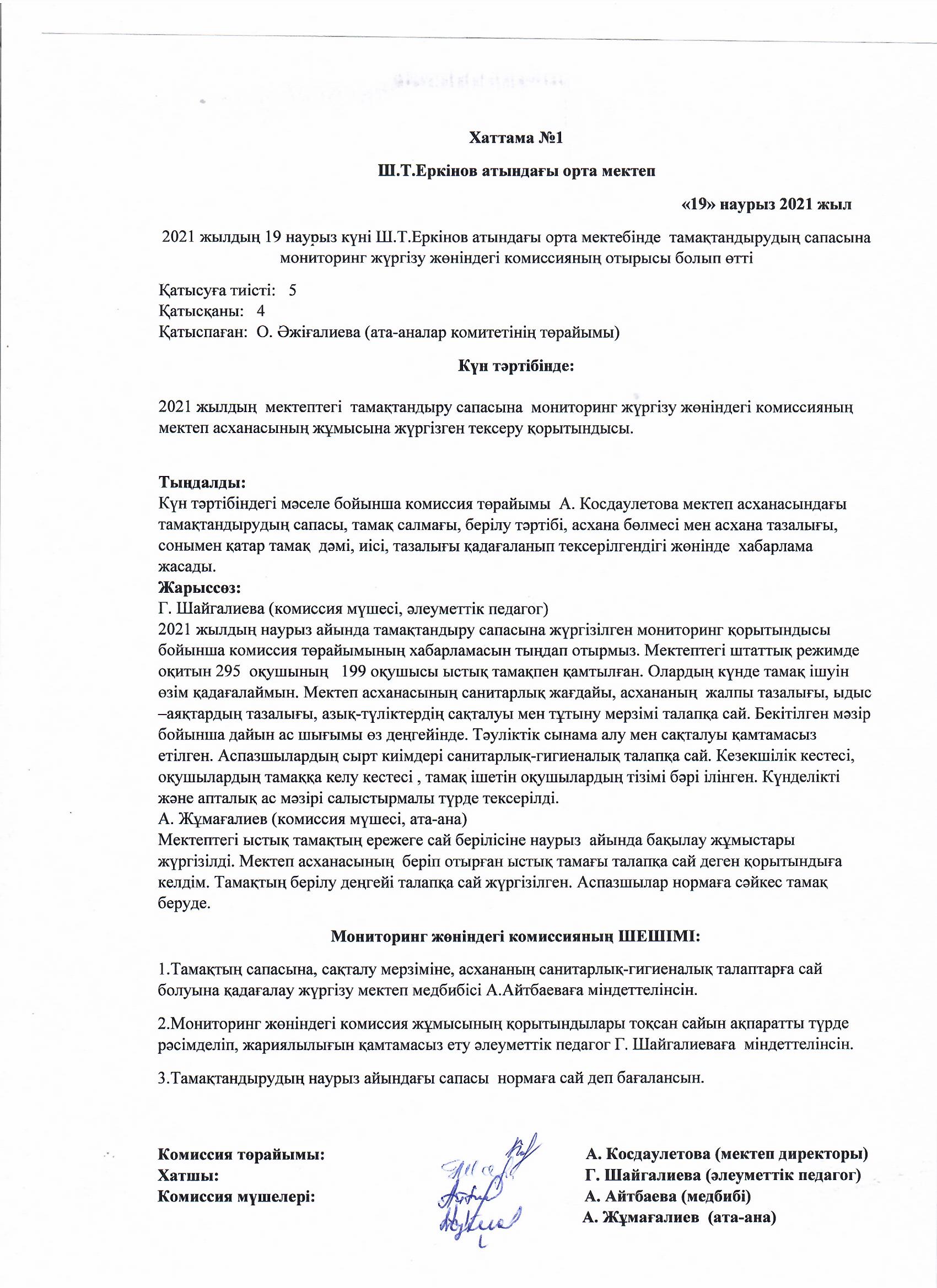 Өзін - өзі аттестациялау комиссиясының қорытындысы бойынша тұжырымы
