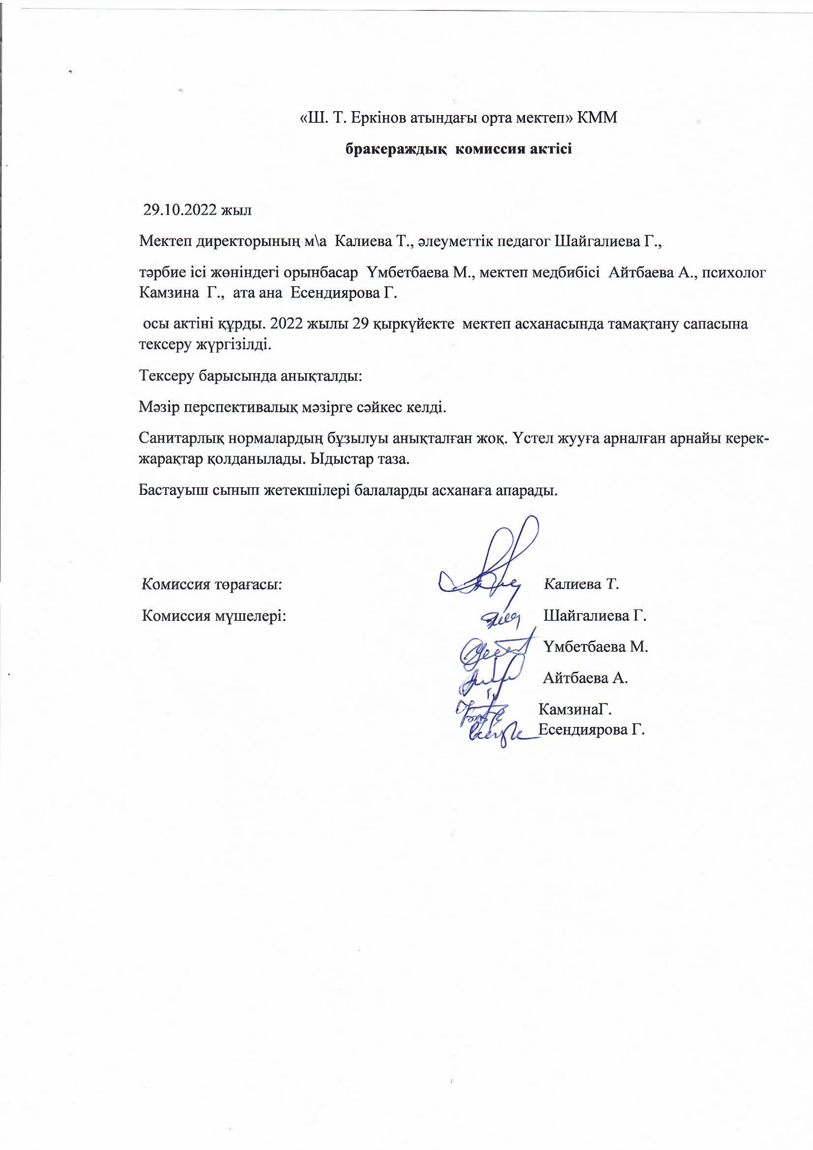 Бракераждық комиссия актісі