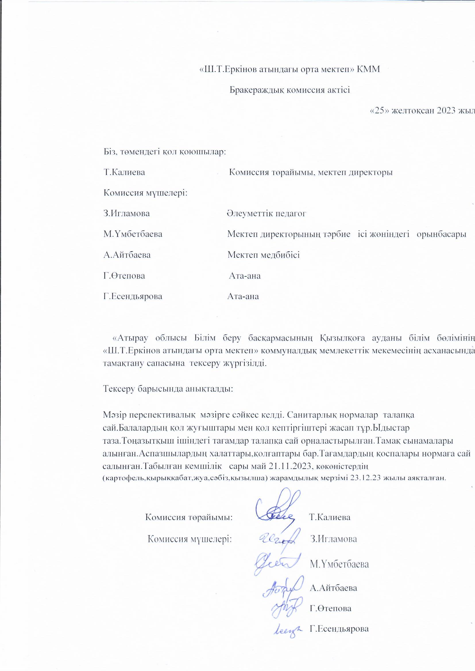Бракераждық комиссия актісі 25.12.2023 жыл