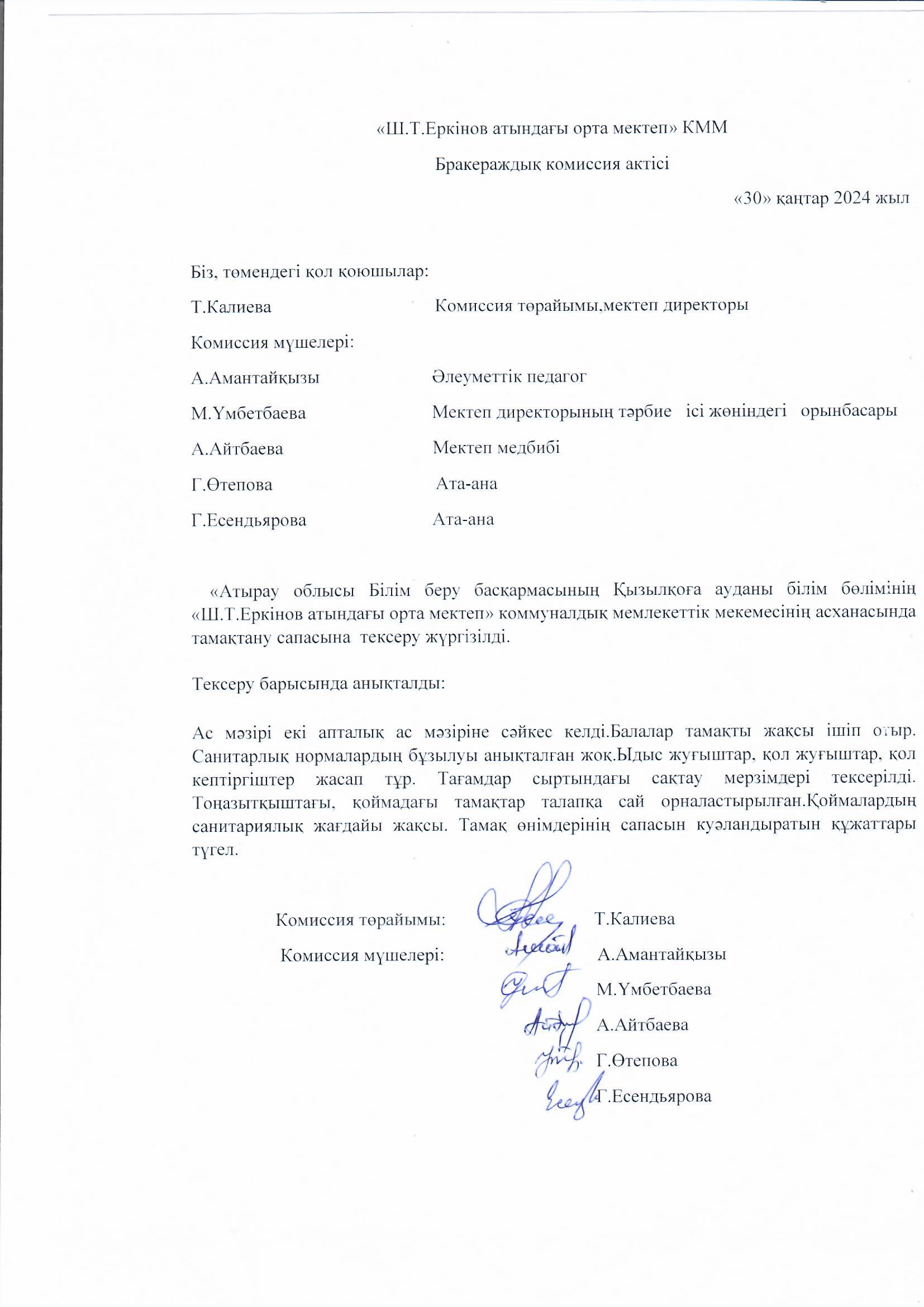 Бракераждық комиссия актісі 30.01.2024 жыл