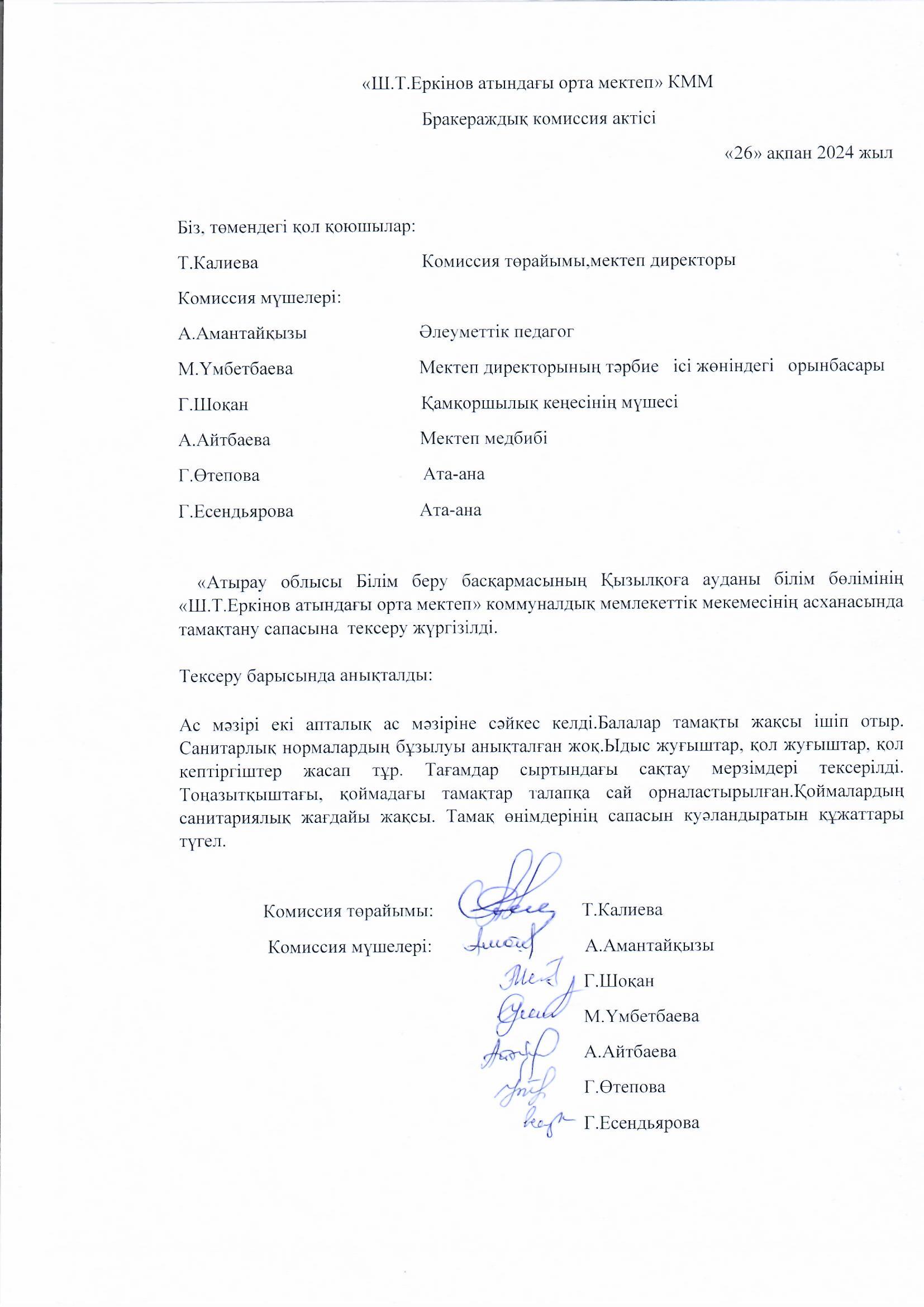 Бракераждық комиссия актісі 26.02.2024 жыл