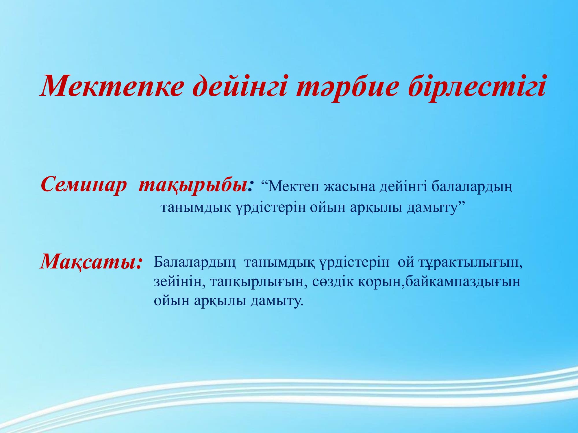 | 1 | Мектепке дейінгі тәрбие бірлестігі 2023 - 2024 оқу жылы |