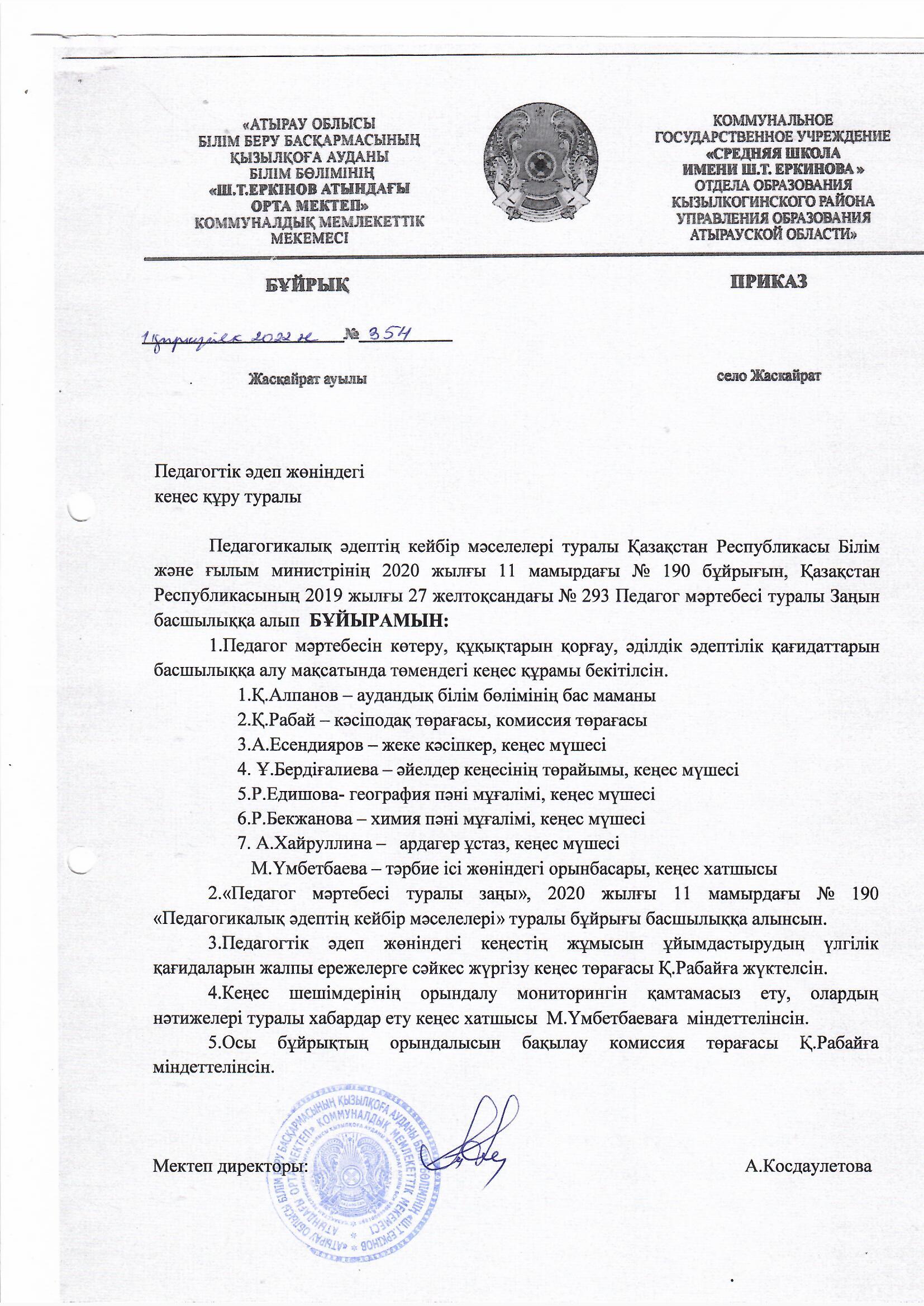 Педагогикалық әдеп бұйрығы