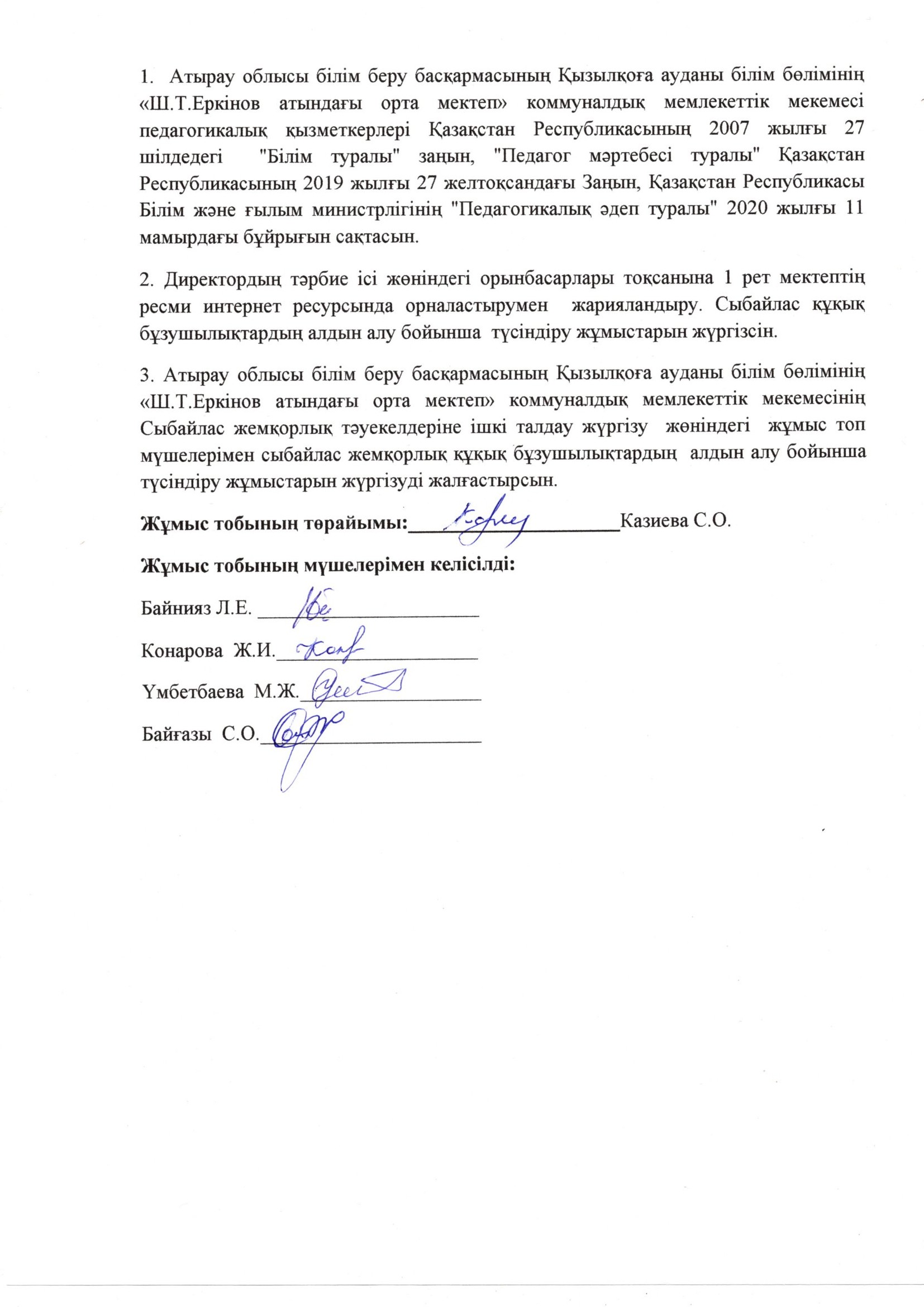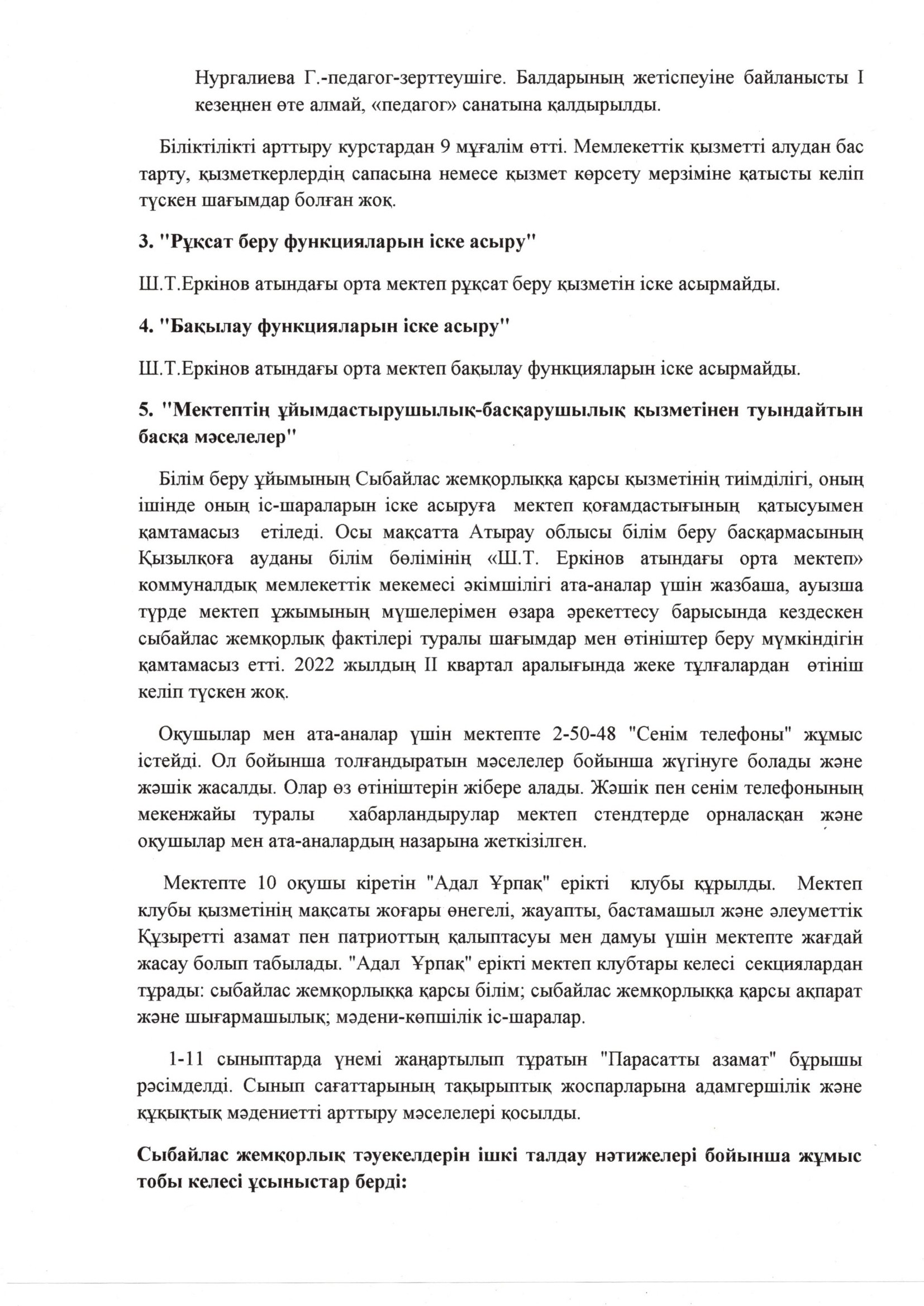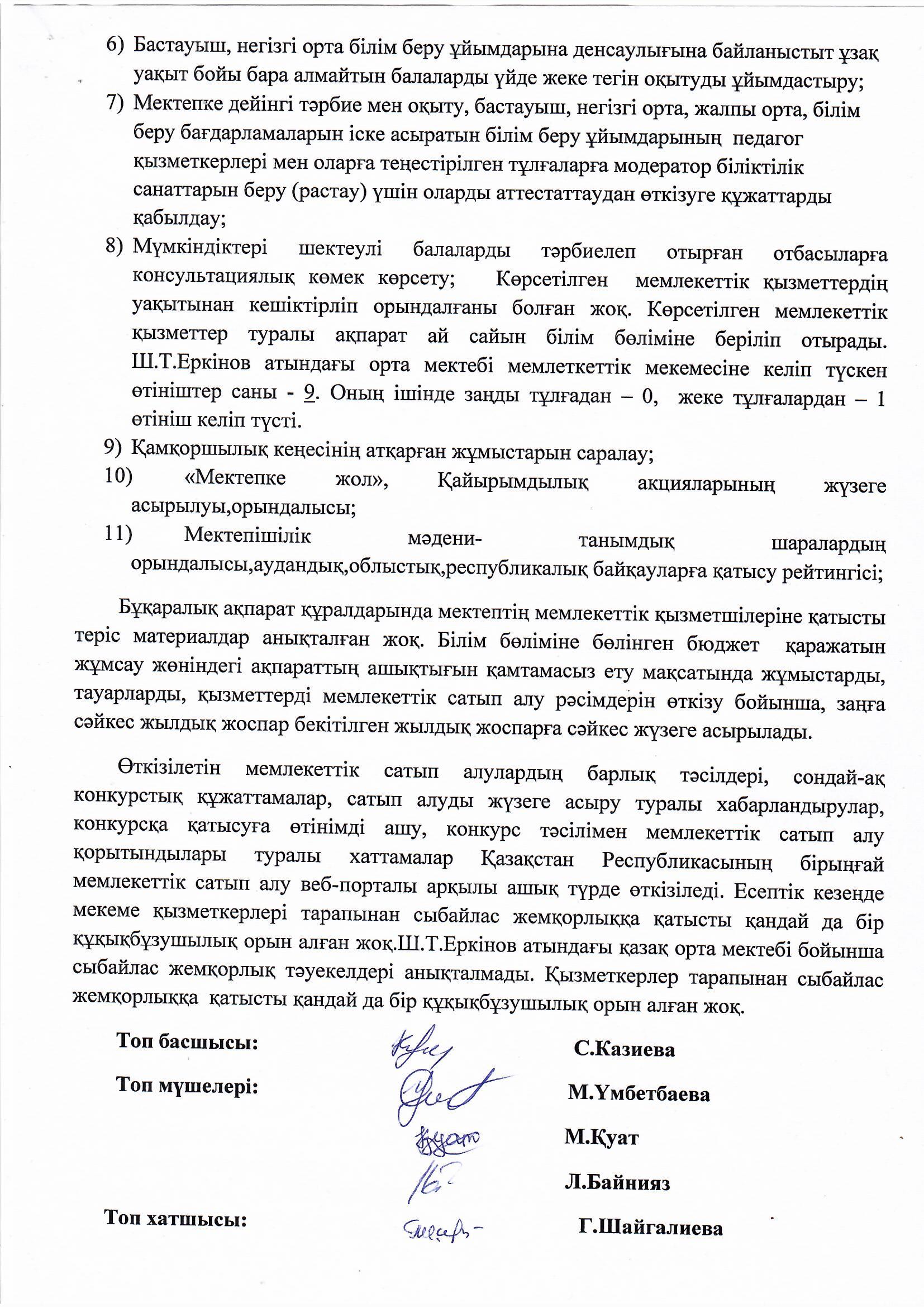 "Ш.Т.Еркінов атындағы орта мектеп" КММ сыбайлас жемқорлыққа қарсы қимыл бойынша іс-шаралар жоспары