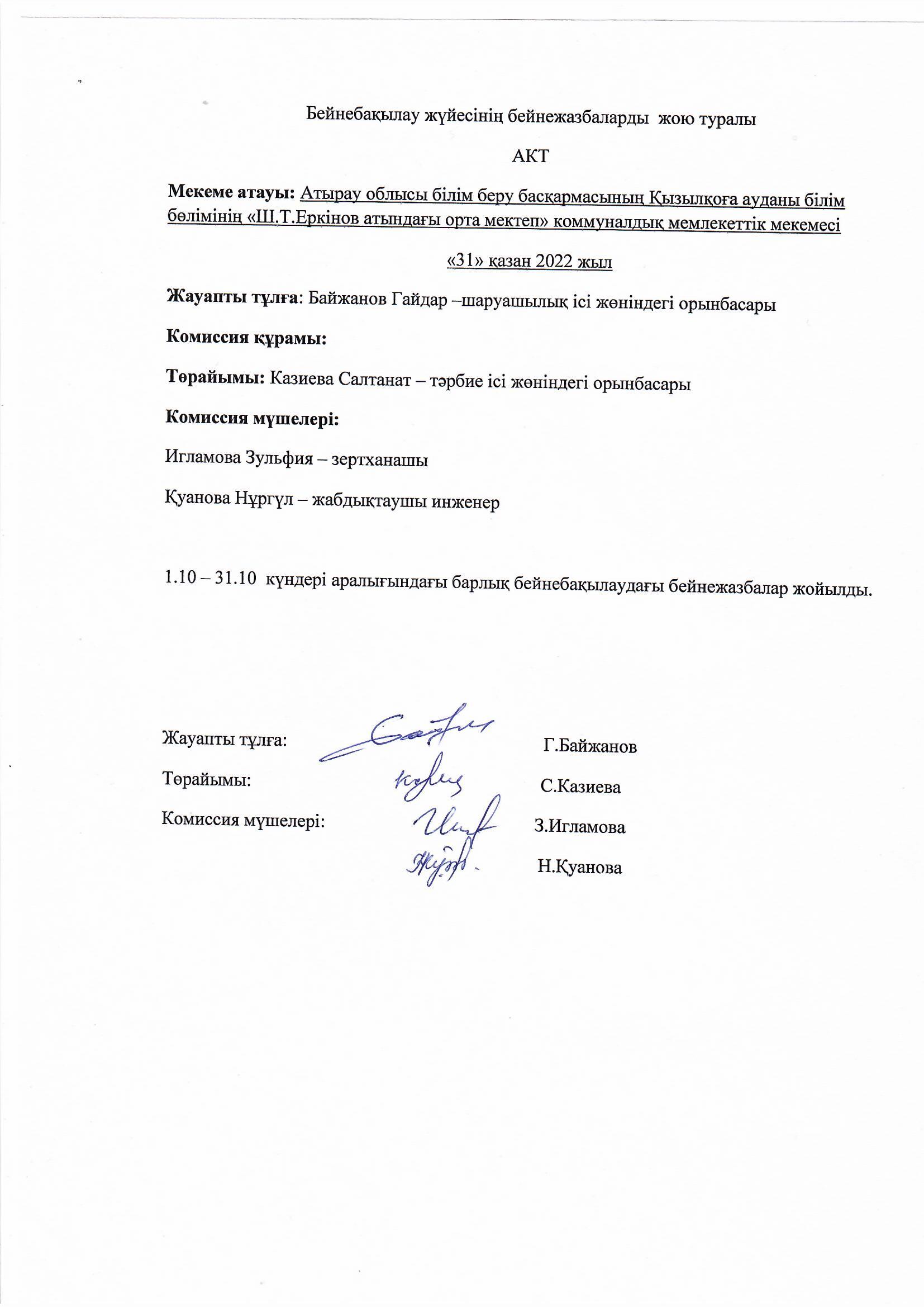 | 1 | 2023 - 2024 оқу жылы. Бейне бақылау бұйрығы | |
